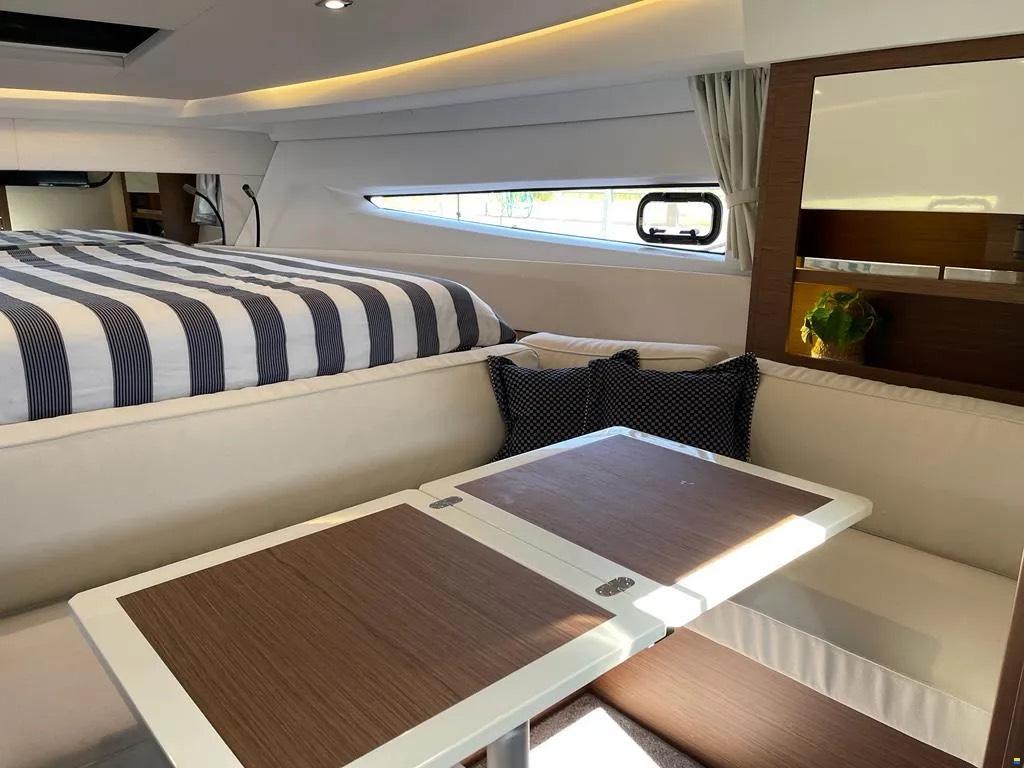 Zum Verkauf steht eine Jeanneau Leader 36 (Baujahr 05/2019), eine sportliche und zugleich komfortable Motoryacht, ideal für Tagesausflüge, Wochenendtörns oder längere Reisen. Mit ihrer modernen Linienführung, großzügigem Cockpit und leistungsstarker Motorisierung bietet sie Fahrspaß und Komfort in einem.