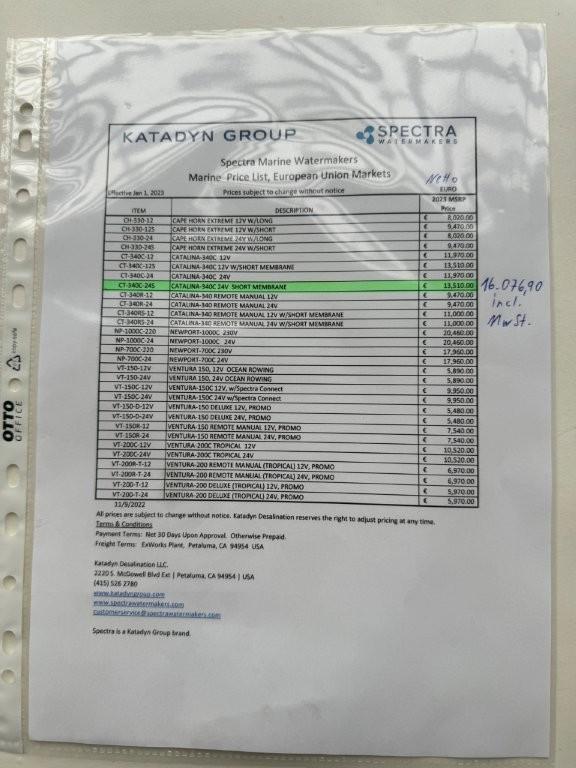 Wir verkaufen eine Spectra Catalina 340C-24V Entsalzungsanlage – neuwertig und sehr wenig gebraucht.