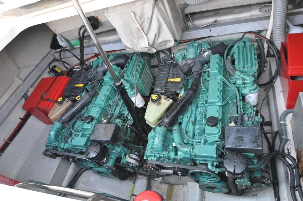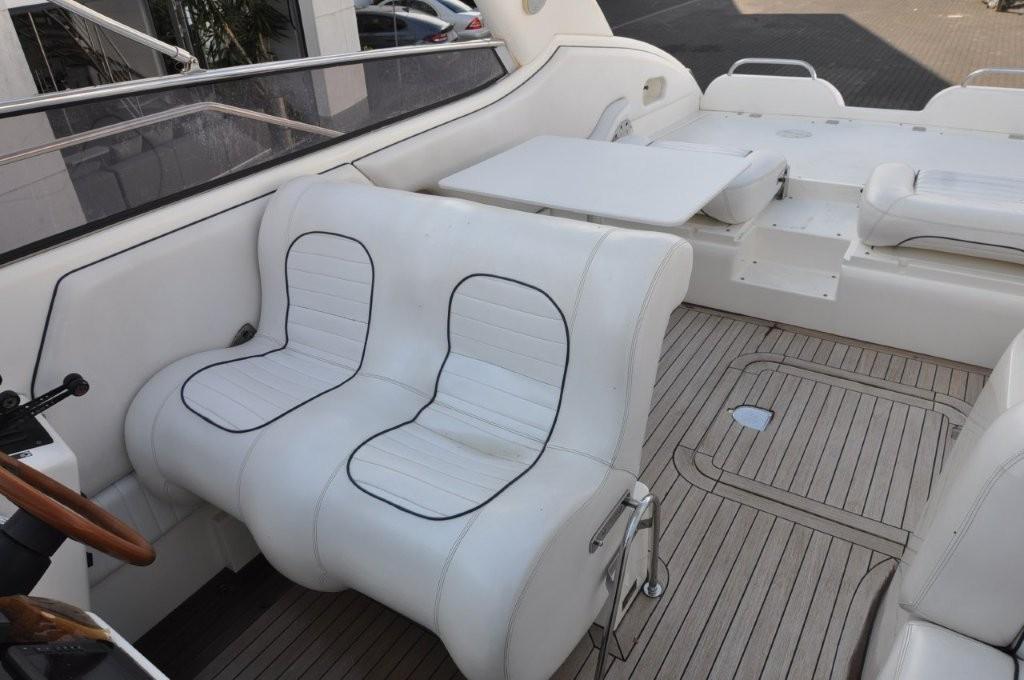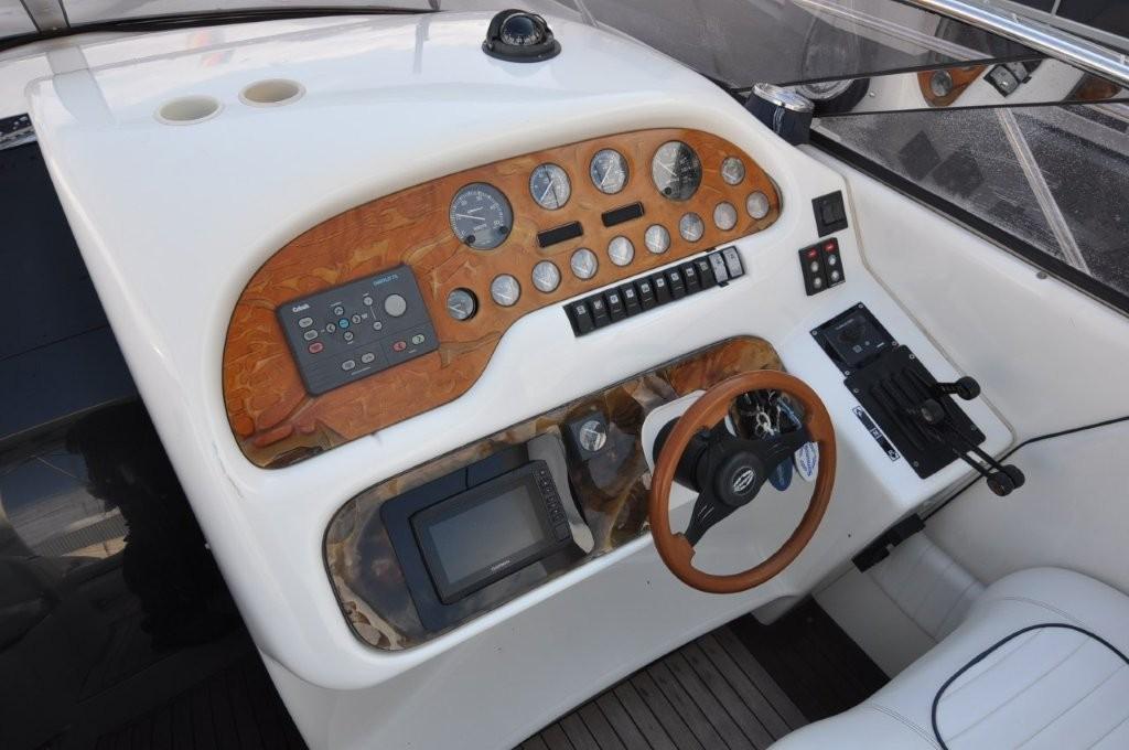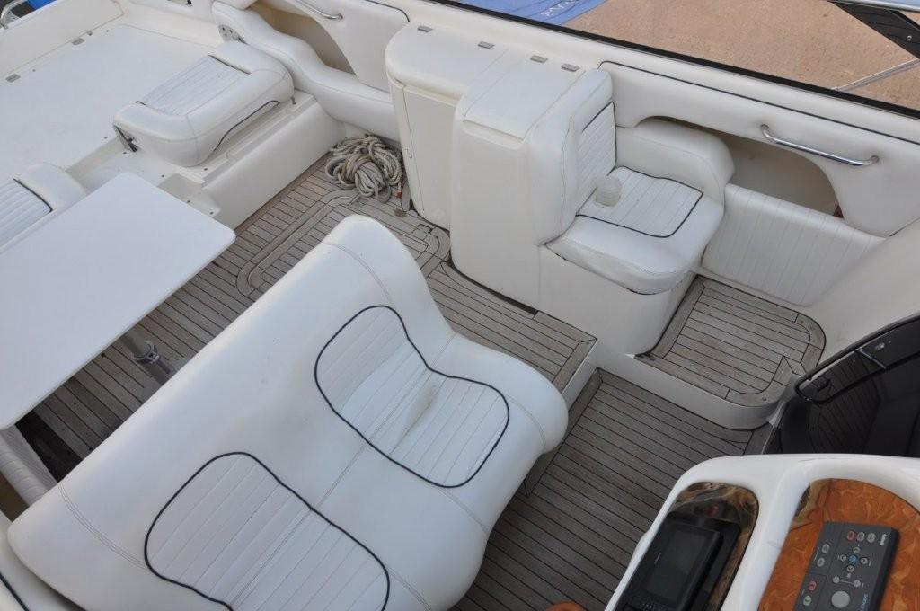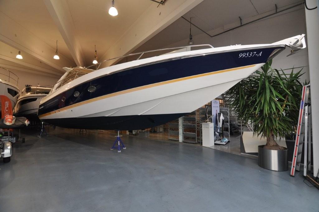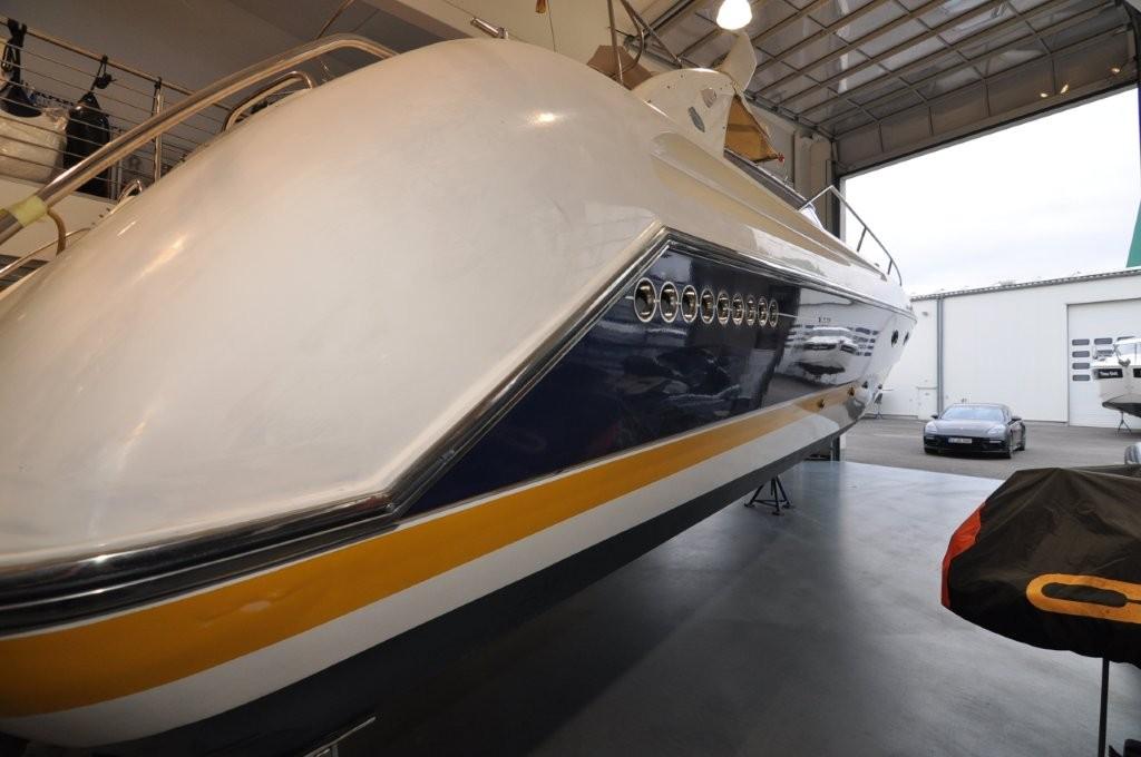 Die Sunseeker 41 Tomahawk gilt als eines der sportlichsten Modelle ihrer Zeit! Mit ihren 2 kraftvollen Motoren erreicht sie spielend hohe Geschwindigkeiten und bietet gleichzeitig souveräne Fahreigenschaften auch bei rauher See.