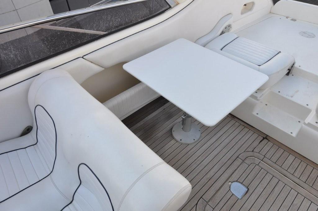 • Gas Stove, Fridge, Sink, GPS, Compass, Speed Instrument, Chartplotter, Depth Instrument, Shore Connection, Battery Charger, Navigation Lights, Anchor, Battery, Bow Thruster, Trim Tabs, Bilge Pump, Radio, Cockpit Speakers, Bathing plaftorm fix, Swim Ladder, Cockpit Table, Teak Cockpit, Cockpit Cover, Underwater Paint, Hafenplane
