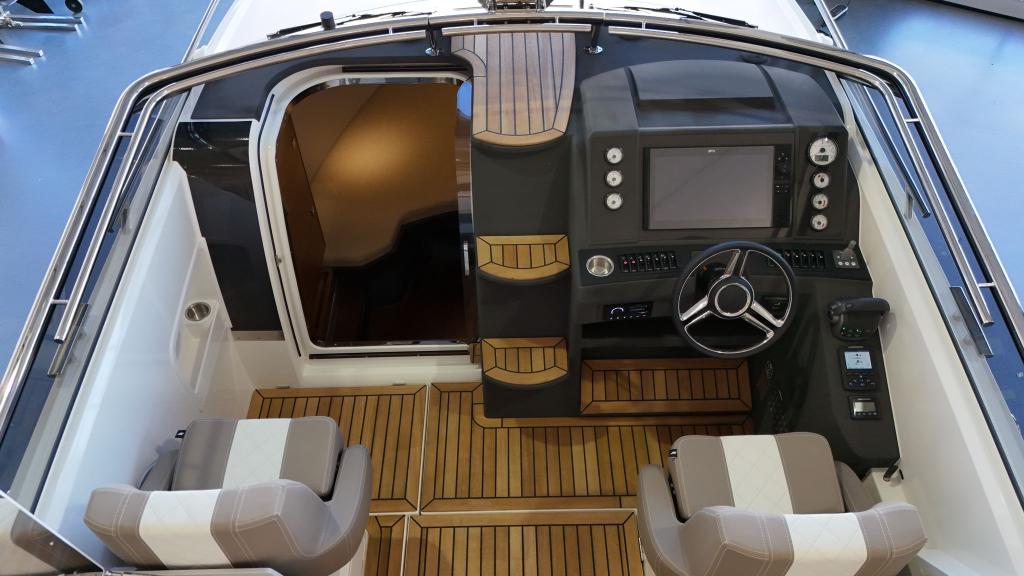 Echtholz-Teak im Cockpit mit schwarzen Teak-Fugen