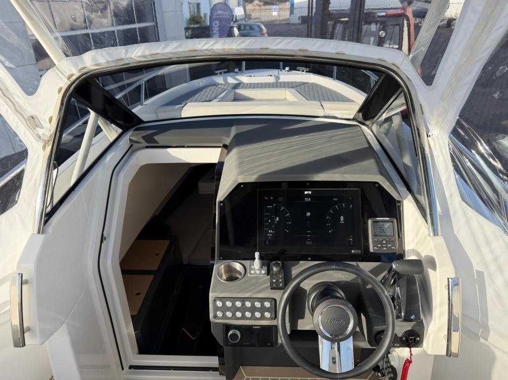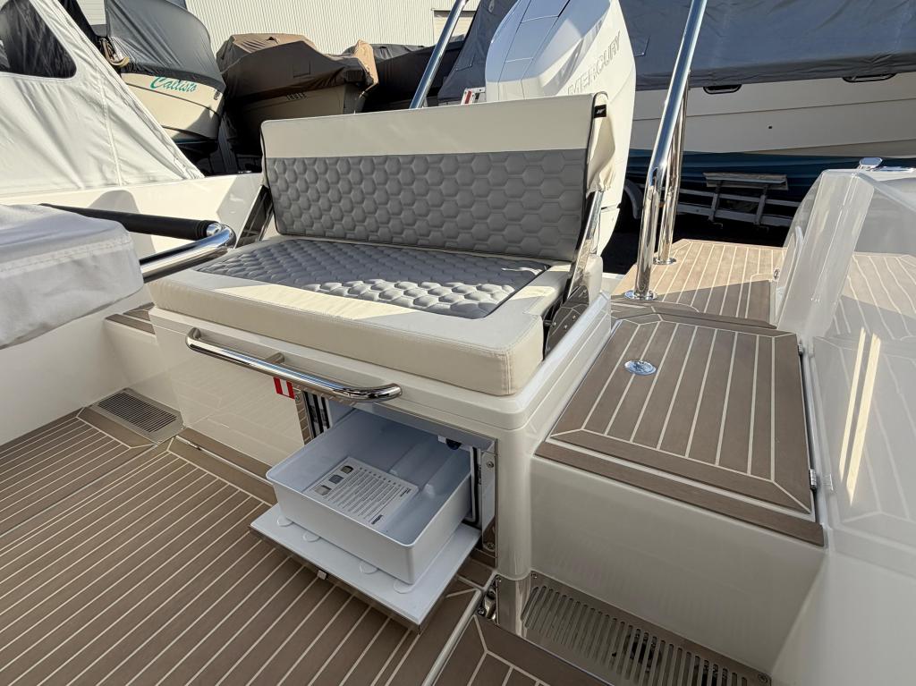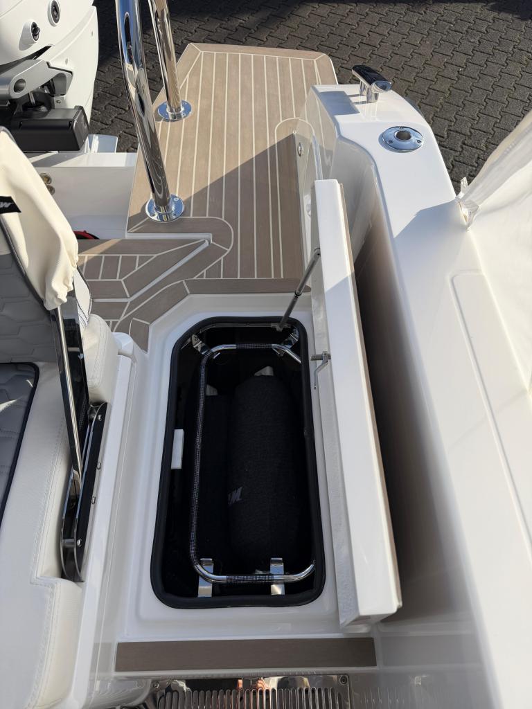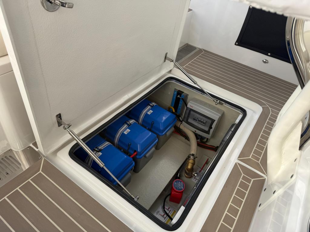 - Kartenplotter: Axiom 16" (2025), Anker, Bug-Ankerwinde, Kühlschrank: Kühlschublade unter Sofa, Trimmklappen: Humphree , Landanschluss: mit Ladegerät + Steckdosen, Teak Cockpit: Flexi-Teak, Bugstrahlruder